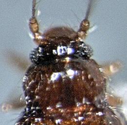 | Keywords: Cissidium foveolatum female head.jpg en adult female Cissidium foveolatum photo taken by me S E Thorpe 2010-08-22 NEW ZEALAND WO btwn Hamilton Raglan<br /> NZ 37 8˚S 175 09˚E Dump<br /> F A; P C 27 29ha W281-001<br /> 33 cm diam litter 72hr Berlese<br /> Edge dist 8 3m -6 1m offset <br /> RK Didham 04-Feb-08 Cissidium Coleoptera head and pronotum |