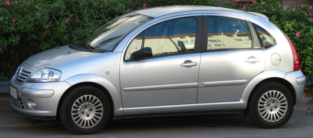 Keywords: Citroen C3 silver.jpg Citroën C3 silver photographed in Warsaw Own digital photograph modified with GIMP removed license plate number clean up dirty spots et al 2006-06-16 User Bravada All rights released Citroën C3 2002