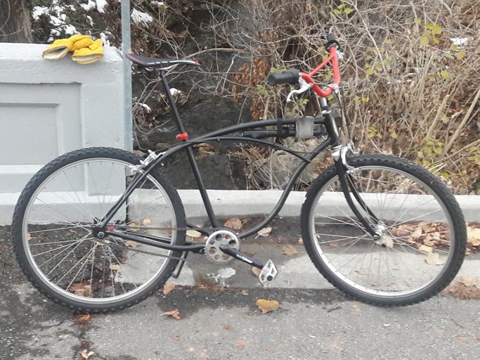 | Keywords: schwinn-speedster schwinnspeedster bicycle schwinn city-bomber citybomber bike vehicle tire wheel outdoor bicycle seat rim 1959 SCHWINN, SPEEDSTER. Original color was metallic green. It was flat black when I found it. It's since been repainted gloss black. Yeah, it needs cleaning. It had fenders on it but no rear wheel. I still have the fenders. Blade forks are the originals. Amaze-za-zing, huh? Other than frame, fork and headset, there are no original parts. 1959 SCHWINN, SPEEDSTER. Original color was metallic green. It was flat black when I found it. It's since been repainted gloss black. Yeah, it needs cleaning. It had fenders on it but no rear wheel. I still have the fenders. Blade forks are the originals. Amaze-za-zing, huh? Other than frame, fork and headset, there are no original parts. |
