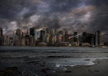 Keywords: city explosion building sky fire nuclear apocalypse armageddon architecture place monuments sea emotions girl woman