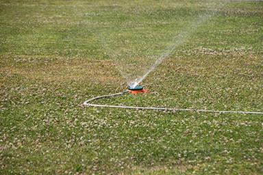 Keywords: city garden grass green heat spraying sprinkler stream swirling water summer