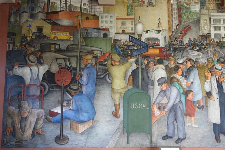 | Keywords: City Life by Victor Arnautoff, 1 of 3 - Coit Tower, San Francisco, CA - DSC04772.jpg en City Life by Victor Arnautoff - Coit Tower San Francisco California USA This artwork is in the public domain because it was created by an employee of the United States Works Progress Administration 2015-05-23 16 00 27 own Daderot other versions PD-USGov-WPA cc-zero City Life by Victor Arnautoff | ||||