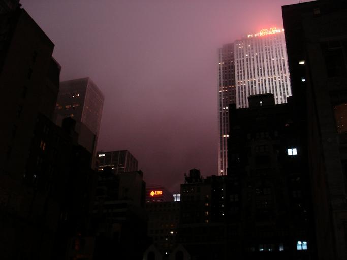 Keywords: city night dark new york nyc fog urban skyline cityscape skyscraper downtown