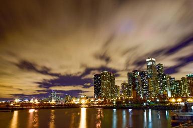 Keywords: city night skyscrapers riverside city at night skyline cityscape river water waterfront night city