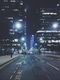 Keywords: city night urban buildings street modern lights metropolitan metropolis skyscrapers downtown dark