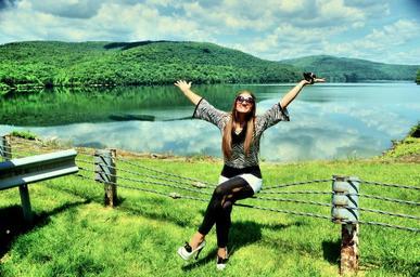 Keywords: city slicker putdoors girl lake woman fashion trendy posing hills water nature landscape country hdr