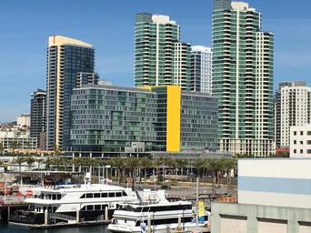 Keywords: city waterfront skyline scene landscape usa modern harbor water downtown cityscape building skyscraper san diego office building