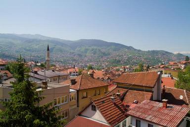 Keywords: sarajevo european ancient bosna hill tree street clear balkan town stone spring herzegovina travel view urban landmark bosnia light saraybosna old morning sun building modern famous war architecture city blue