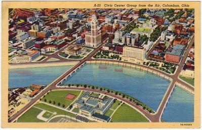 | Keywords: postcard postmarked unused unknown date unknowndate date unknown dateunknown white border whiteborder white border era whiteborderera linen w.e. ayres weayres w.e. ayers weayers curt teich co. curtteichco curteich curteich-chicago curteichchicago columbus columbus, ohio columbusohio ohio c.t. art colortone ctartcolortone rivers river riverfront scioto river sciotoriver downtown leveque tower levequetower leveque lincoln tower levequelincolntower leveque a.i.u. citadel aiucitadel bridges central high school centralhighschool civic center group civiccentergroup aerial view aerialview aerial post office postoffice city prison cityprison jail city hall cityhall a.i.u. tower aiutower city buildings citybuildings statehouse state capitol statecapitol capitol building capitolbuilding state office building stateofficebuilding ohio state office building ohiostateofficebuilding Description on front of card: Civic Center Group from the Air, Columbus, Ohio No. in Series: A-25 Description on back of card: Civic Center along the banks of Scioto River; at lower center is Central High School; across the river left to right are: new Post Office, City Prison, City Hall, A.I.U. Tower and new State Office Bldg. Building with dome in right center is the State House. Published by: W.E. Ayres, Columbus, Ohio | Genuine Curteich-Chicago "C.T. Art-Colortone" post card, a tradename under Curt Teich Co., Chicago, Illinois Unused. Publisher Note: Curt Teich emigrated to Chicago in 1895. He had worked as a lithographer in Lobenstein, Germany. He founded the Curt Teich Company in 1898, concentrating on newspaper and magazine printing. He was an early publisher of postcards, but he didn't begin printing them himself until 1908. According to MetroPostcard.com, "As his competition dwindled, his sales expanded and his American factories would eventually turn out more postcards than any other in the United States. " The company was best known for their wide range of advertising and postcards of North America. By the 1920s, it was producing so many postcards with borders that they became recognized as a type dubbed "White Border Cards," creating an "era." Curt Teich started using offset presses in 1907, but it took a number of years before he had offset presses made to his satisfaction, and many more years for him to perfect the method. His innovations in this printing technique directly led to the production of what we now call "linens" by the early 1930s. The company aided the war effort during the second world war by also printing many military maps. Curt Teich eventually turned management of the company over to his son, but he remained active in company operations throughout its history. Curt Teich died in 1974 and the family business was sold to Regensteiner Publishers who continued to print postcards at the Chicago plant until 1978 when the rights to the company name and processes were sold to the Irish company, John Hinde Ltd. Their California subsidiary now prints postcards under the name John Hinde Curteich, Inc. Source: www.metropostcard.com/publisherst.html Description on front of card: Civic Center Group from the Air, Columbus, Ohio No. in Series: A-25 Description on back of card: Civic Center along the banks of Scioto River; at lower center is Central High School; across the river left to right are: new Post Office, City Prison, City Hall, A.I.U. Tower and new State Office Bldg. Building with dome in right center is the State House. Published by: W.E. Ayres, Columbus, Ohio | Genuine Curteich-Chicago "C.T. Art-Colortone" post card, a tradename under Curt Teich Co., Chicago, Illinois Unused. Publisher Note: Curt Teich emigrated to Chicago in 1895. He had worked as a lithographer in Lobenstein, Germany. He founded the Curt Teich Company in 1898, concentrating on newspaper and magazine printing. He was an early publisher of postcards, but he didn't begin printing them himself until 1908. According to MetroPostcard.com, "As his competition dwindled, his sales expanded and his American factories would eventually turn out more postcards than any other in the United States. " The company was best known for their wide range of advertising and postcards of North America. By the 1920s, it was producing so many postcards with borders that they became recognized as a type dubbed "White Border Cards," creating an "era." Curt Teich started using offset presses in 1907, but it took a number of years before he had offset presses made to his satisfaction, and many more years for him to perfect the method. His innovations in this printing technique directly led to the production of what we now call "linens" by the early 1930s. The company aided the war effort during the second world war by also printing many military maps. Curt Teich eventually turned management of the company over to his son, but he remained active in company operations throughout its history. Curt Teich died in 1974 and the family business was sold to Regensteiner Publishers who continued to print postcards at the Chicago plant until 1978 when the rights to the company name and processes were sold to the Irish company, John Hinde Ltd. Their California subsidiary now prints postcards under the name John Hinde Curteich, Inc. Source: www.metropostcard.com/publisherst.html |