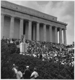 | Keywords: Civil Rights March on Washington, D.C. (Marchers at the Lincoln Memorial.) - NARA - 542053.tif Scope and content General notes 542053 Local identifier 306-SSM-4D 89 1 U S Information Agency Press and Publications Service ca 1953 - ca 1978 Still Picture Records Section Special Media Archives Services Division NWCS-S National Archives at College Park 8601 Adelphi Road College Park MD 20740-6001 1963-08-28 Record group Record Group 306 Records of the U S Information Agency 1900 - 2003 Record group ARC 622 Miscellaneous Subjects Staff and Stringer Photographs compiled 1961 - 1974 Series ARC 541992 File unit File unit ARC Variant control numbers NAIL Control Number NWDNS-306-SSM-4D 89 1 yes Other versions NARA-cooperation PD-USGov March on Washington for Jobs and Freedom Lincoln Memorial |