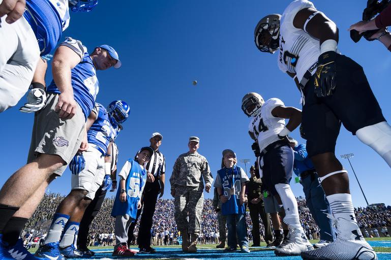 | Keywords: CJCS and VCJCS attend Warrior Games Tailgate and AF vs. Navy football 141004-D-HU462-307.jpg en Chairman of the Joint Chiefs of Staff U S Army Gen Martin E Dempsey flips the game coin at the start of the Air Force vs Navy football game at the U S Air Force Academy's Falcon Stadium in Colorado Springs Colo Oct 4 2014 DOD photo by Staff Sgt Sean K Harp U S Army/Released 2014-10-04 Staff Sgt Sean Harp https //www dvidshub net/image/1603455 141004-D-HU462-307 2014-10-07 16 03 UNITED STATES AIR FORCE ACADEMY CO US PD-USGov Martin E Dempsey Falcon Stadium Images from DoD uploaded by Fæ |