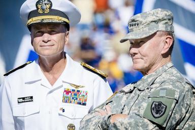 | Keywords: CJCS and VCJCS attend Warrior Games Tailgate and AF v Navy football 141004-D-HU462-489.jpg en 18th Chairman of the Joint Chiefs of Staff Gen Martin E Dempsey and Vice Chairman of the Joint Chiefs of Staff Adm James A Winnefeld Jr attend the Warrior Games tailgate celebration that was co-held at the Air Force versus Navy football game at the U S Air Force Academy's Falcon Stadium in Colorado Springs Colorado Oct 4 2014 DoD photo by Army Staff Sgt Sean K Harp/Released 2014-10-04 Staff Sgt Sean Harp https //www dvidshub net/image/1604899 141004-D-HU462-489 2014-10-08 00 01 UNITED STATES AIR FORCE ACADEMY CO US PD-USGov James A Winnefeld Jr Martin E Dempsey Falcon Stadium Images from DoD uploaded by Fæ |