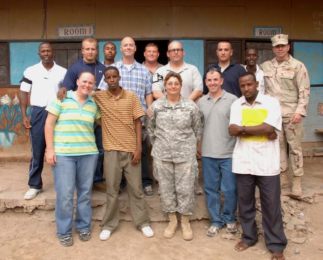 | Keywords: CJTF-HOA Personnel Donate School Supplies to Djibouti School DVIDS72224.jpg en Combined Joint Task Force-Horn of Africa personnel pose for a photo with the school's staff after delivering school supplies to the Horsed Private School of English Jan 7 The school supplies were donated by Living Waters Foursquare Church in Mooresville N C The congregation of Living Waters sent the boxes to Army Staff Sgt Rex Hipp 1132nd Engineering Detachment well drilling team who is a member of their congregation 2008-01-07 Chief Petty Officer Mary Popejoy https //www dvidshub net/image/72224 080107-N-+++++-021 2008-01-11 12 36 DJIBOUTI DJ PD-USGov-Military-Navy Combined Joint Task Force - Horn of Africa Images from DoD uploaded by Fæ |