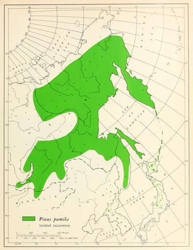 | Keywords: CL-03 Pinus pumila range map.png en Map 3 Pinus pumila distribution 1966-02 http //www biodiversitylibrary org/bibliography/66393 /summary Geographic distribution of the pines of the world Miscellaneous publication no 991 U S Department of Agriculture Forest Service Washington D C February 1966 William B Critchfield Elbert L Little Jr U S Department of Agriculture Forest Service PD-USGov Uploaded with UploadWizard Pinus pumila Geographic Distribution of the Pines of the World | ||||