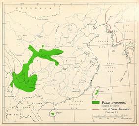 | Keywords: CL-11 Pinus armandii range map.png en Map 11 Pinus armandii distribution 1966-02 http //www biodiversitylibrary org/bibliography/66393 /summary Geographic distribution of the pines of the world Miscellaneous publication no 991 U S Department of Agriculture Forest Service Washington D C February 1966 William B Critchfield Elbert L Little Jr U S Department of Agriculture Forest Service PD-USGov Geographic Distribution of the Pines of the World Uploaded with UploadWizard Pinus armandii | ||||
