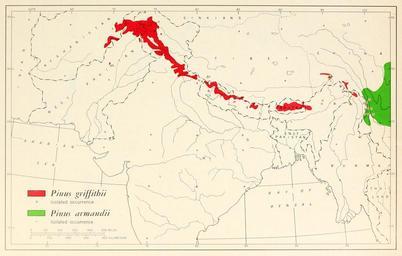 | Keywords: CL-12 Pinus griffithii & Pinus armandii range map.png en Map 12 Pinus wallichiana syn P griffithii Pinus armandii distribution 1966-02 http //www biodiversitylibrary org/bibliography/66393 /summary Geographic distribution of the pines of the world Miscellaneous publication no 991 U S Department of Agriculture Forest Service Washington D C February 1966 William B Critchfield Elbert L Little Jr U S Department of Agriculture Forest Service PD-USGov Pinus wallichiana Pinus armandii Geographic Distribution of the Pines of the World Uploaded with UploadWizard |