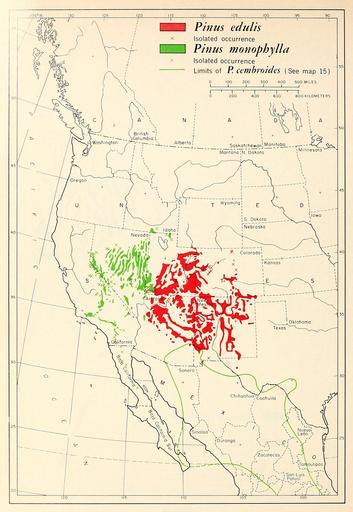 | Keywords: CL-17 Pinus edulis & Pinus monophylla range map.png en Map 17 Pinus edulis Pinus monophylla distribution 1966 http //www biodiversitylibrary org/bibliography/66393 /summary Geographic distribution of the pines of the world Miscellaneous publication no 991 U S Department of Agriculture Forest Service Washington D C February 1966 William B Critchfield Elbert L Little Jr U S Department of Agriculture Forest Service PD-USGov Geographic Distribution of the Pines of the World Uploaded with UploadWizard Pinus edulis range maps Pinus monophylla range maps |