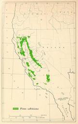 | Keywords: CL-54 Pinus sabiniana range map.png en Map 54 Pinus sabiniana distribution 1966-02 http //www biodiversitylibrary org/bibliography/66393 /summary Geographic distribution of the pines of the world Miscellaneous publication no 991 U S Department of Agriculture Forest Service Washington D C February 1966 William B Critchfield Elbert L Little Jr U S Department of Agriculture Forest Service PD-USGov Geographic Distribution of the Pines of the World Uploaded with UploadWizard Pinus sabiniana range maps |