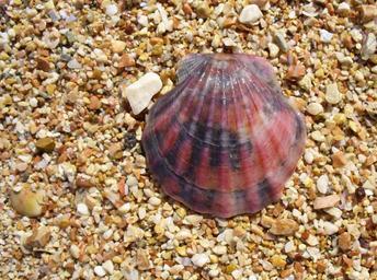 Keywords: clam shell seashell flexopecten ponticus red beach pebbles