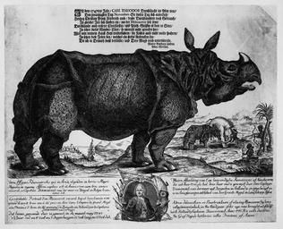 | Keywords: Clara 1747.jpg Northern Netherlands 1747 etching <br /> letterpress cm 44 9 55 8 Institution Rijksmuseum Frederik Muller Historieplaten accession number RP-P-OB-75 362 object history ProvenanceEvent 1881 purchase LangSwitch vom the le het Rijksmuseum Amsterdam credit line In dem 1747ten Jahr CARL THEODOR Durchläucht im Pfau war / Den zwartzigsten Tag Novembris Sie diesen Tag sich auserkieß / Herzog Christian Prinz Friedrich auch bende Durchläuchten nach Gebrauch / zu gleicher Zeit sich fanden ein wo der Rhinoceros solt seyn / Durchläucht auch unsere Churfürstin und Pfaltz-Gräffin es kam in Sinn / Zu sehen dieses Wunder-Thier so niemahl nicht gewesen hier / Weil nun meinem Hauß Heyl wiederfahren die Kösten auch nicht wolte spahren / Zu letzten diese Zeilen bey welches ein steths Andencken sey / Die ich in Demuth sonst verbleibe / und Dero Magd mich unterschreibe // Maria Barbara Endtin / Pfau-Wirthin top Vera effigies Rhinocerotis qui in Asia et qvidem in terris Magni / Mogutis in regione Assem captus est et Anno 1741 cum tres annos / vixerit a Captän Douwemout van der meer ex Bengal in Belgia trans- / latus ets bottom left Le véritable Portrait d'un Rhinocerot vivant leqvel dans l'année 1741 / qvand il avait trois ans à été pris en Asie dans l'Empire du Grans Mogol / ala Province d'Asem ela été ammene de Bengala en Hollande par le Capitaine / Douwemout van der meer bottom left dat bovem genoemde dier is geweest in de maant may 1741 / 8½ Jaar oud en 5 voet en 7 duym hoogen 12 Voet lang en 12 voet dick bottom left Waare Afbeelding van Een leevendighe Renoceros of Naashooren / die int Jaar 1741 als hel drie Jaar oud is geweest door den Capleyn / Douwemout van der meer uyt Bengalen in Holland is overgebragt en / is in Asia gevangen int Gebiet van den Groote Mogul in Landschapp Assem bottom right A true delineation or Portraicture of aliving Rhinoceros by Some / calleg Unicorn which in the third year of its age was brought out of Beng / lavit Holland by Captaine Douwemout Anno 1741 It is cath dwithin / the Gross Moguls teritories inthe Province of Asem bottom right Douwemout vander / meer / geboren den 12 April 1705 bottom center RP-P-OB-75 362 www rijksmuseum nl http //www rijksmuseum nl/ lang en Home https //www rijksmuseum nl/collectie/RP-P-OB-75 362 Info PD-old-100 ImageNote 1 631 947 355 313 1600 1297 2 299px<br /> File Douwe Mout van der Meer png<br /> detail ImageNoteEnd 1 Clara rhinoceros Dutch 18th-century prints in the Rijksmuseum Amsterdam Anonymous |