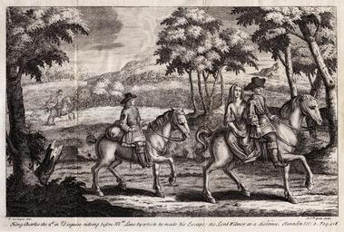 | Keywords: Clarendon's History of the Rebellion - P. La Vergne - Michael van der Gucht - Flight of Charles II.jpg King Charles the 2<sup>d</sup> in Disguise rideing before M<sup>rs</sup> Lane by which he made his Escape; the Lord Wilmor at a distance Clarendon Vol 3 Pag 418 - P La Vergne inv M V<sup>dr</sup> Gucht Sculp <center>THE <big>HISTORY</big><br /> OF THE<br /> <big><i>REBELLION</i></big><br /> AND<br /> <big>C</big>IVIL <big>W</big>ARS<br /> IN <br /> <big>ENGLAND</big><br /> Begun in the Yeaar 1641 <br /> With the precedent Paſſages and Actions that contributed thereunto and the happy End and Concluſion thereof by the K<small>ING</small>'<small>S</small> bleſſed R<small>ESTORATION</small> and R<small>ETURN</small> upon the 29<sup>th</sup> of <i>May</i> in the Year 1660 <hr> <small>Written by the Right Honourable</small><br /> E<small>DWARD</small> E<small>ARL</small> of C<small>LARENDON</small> <br /> Late Lord High Chancellor of <i>England</i> Privy Counſellor in the Reigns of King C<small>HARLES</small> the Firſt and the Second <hr> κτῆμα ἐς εί <i>Thucyd </i><br /> <i>Ne quid Falſi dicere audeat ne quid Veri non audeat </i> Cicero <hr> V<small>OLUME</small> III P<small>ART</small> 2 <hr> <i>OXFORD </i><br /> Printed at the T<small>HEATER</small> <i>An Dom </i> MDCCXXXI 1731 Michael van der Gucht after P La Vergne PD-Old-100 File Clarendon's History of the Rebellion - P La Vergne - Michael van der Gucht - Flight_of_Charles_II - original scan png - Original Scan - Archival PNG File Clarendon's History of the Rebellion - P La Vergne - Michael van der Gucht - Flight_of_Charles_II - original scan jpg - Original Scan - JPG for easy viewing File Clarendon's History of the Rebellion - P La Vergne - Michael van der Gucht - Flight_of_Charles_II png - Restoration - Archival PNG File Clarendon's History of the Rebellion - P La Vergne - Michael van der Gucht - Flight_of_Charles_II jpg - Restoration - JPEG Edward Hyde 1st Earl of Clarendon Michael Vandergucht 17th-century engravings English Civil War Charles II of England in engravings |