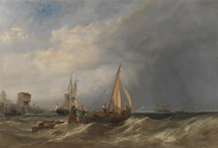 | Keywords: Clarkson Stanfield - A Dutch Barge and Merchantmen Running out of Rotterdam - Google Art Project.jpg No inscription Inscription _Signed_and_Dated Signed and dated lower right CStanfield RA 1856 Not on View Oil on canvas birds clouds sky men sailors storm waves water ship barge cargo boats marine art Dutch lighthouse boats merchants special url_id SAGw03B9ddwlXw PD-old-100-1923 1867 Google Art Project works by Clarkson Stanfield William Clarkson Stanfield Sailing ships of the Netherlands |