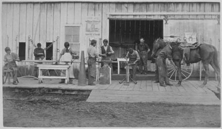 | Keywords: Class in blacksmithing, Forest Grove School, Oregon, 1882 - NARA - 519138.tif Local identifier 75-IP-1-23 Department of the Interior Office of Indian Affairs 1849 - 09/17/1947 Still Picture Records Section Special Media Archives Services Division NWCS-S National Archives at College Park 8601 Adelphi Road College Park MD 20740-6001 1882 Record group Record Group 75 Records of the Bureau of Indian Affairs 1793 - 1999 Record group ARC 404 Photographs of Indians Indian Agencies and Schools compiled 1876 - 1896 Series ARC 519134 Variant control numbers NAIL Control Number NWDNS-75-IP-1-23<br /> Select List Identifier INDIANS 157 General notes Scope and content File unit File unit ARC yes <gallery> File Class_in_blacksmithing _Forest_Grove_School _Oregon _1882_-_NARA_-_519138 tif tif File Class_in_blacksmithing _Forest_Grove_School _Oregon _1882_-_NARA_-_519138 jpg jpg </gallery> NARA-cooperation PD-USGov Blacksmiths Native American schools Blacksmiths from the United States NARA TIF images with categorized JPGs |