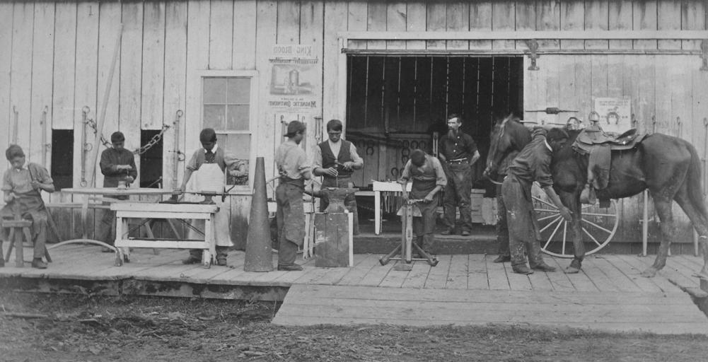 | Keywords: Class in blacksmithing, Forest Grove School, Oregon, 1882 - NARA - 519138 (cropped).jpg Scope and content General notes 519138 Local identifier 75-IP-1-23 Department of the Interior Office of Indian Affairs 1849 - 09/17/1947 Still Picture Records Section Special Media Archives Services Division NWCS-S National Archives at College Park 8601 Adelphi Road College Park MD 20740-6001 1882 Record group Record Group 75 Records of the Bureau of Indian Affairs 1793 - 1999 Record group ARC 404 Photographs of Indians Indian Agencies and Schools compiled 1876 - 1896 Series ARC 519134 File unit File unit ARC Variant control numbers NAIL Control Number NWDNS-75-IP-1-23<br /> Select List Identifier INDIANS 157 Other versions <gallery> File Class_in_blacksmithing _Forest_Grove_School _Oregon _1882_-_NARA_-_519138 tif tif File Class_in_blacksmithing _Forest_Grove_School _Oregon _1882_-_NARA_-_519138 jpg jpg </gallery> NARA-cooperation PD-USGov Blacksmiths from the United States Native American schools Class in blacksmithing Forest Grove School Oregon 1882 - NARA - 519138 jpg |