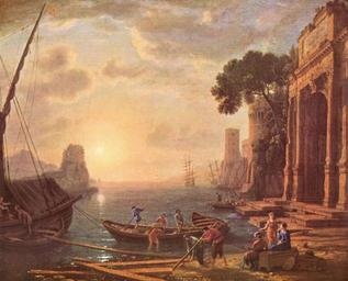 | Keywords: Claude Lorrain 009.jpg de Hafen beim Sonnenuntergang Oil Canvas cm 97 119 Eremitage de Vedutenmalerei Landschaftsmalerei The Yorck Project 10 000 Meisterwerke der Malerei DVD-ROM 2002 ISBN 3936122202 Distributed by DIRECTMEDIA Publishing GmbH c 1649 creator Claude Lorrain http //mail wikipedia org/pipermail/wikide-l/2005-April/012195 html Other versions <gallery> File Claude_Lorrain_-_A_Seaport_at_Sunrise_-_WGA05016 jpg 4 109 × 3 005 pixels </gallery> PD-old-100 PD-Art-YorckProject Baroque paintings of seascapes Paintings of seascapes with sunset 17th-century sailing ships in paintings Baroque paintings of harbours Paintings by Claude Lorrain Paintings of boats Paintings of men at work 17th-century oil on canvas paintings in Russia 17th-century paintings location missing Coasts in art People with boats in art 1640s paintings from France Sailboats at sunset Oil paintings of ports and harbours |