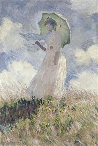 | Keywords: Claude Monet 0.sonnenschirm.jpg Artwork creator Claude Monet en Study of a Figure Outdoors Woman with a Parasol facing left de Studie Frau mit Sonnenschirm nach links gewandt fr Essai de figure en plein-air Femme à l'ombrelle tournée vers la gauche en The pictured woman is Hoschédé Suzanne daughter of Alice Hoschédé second wife of Claude Monet 1868-1899 fr Hoschédé Suzanne fille d'Alice Hoschédé seconde épouse de Claude Monet 1868-1899 1886 oil canvas cm 131 88 7 Institution Musée d'Orsay Adhémar Hélène - Distel Anne - Gache Sylvie Hommage à Claude Monet 1840-1926 cat exp Paris 1980 Rossi Bortolatto Luigina Tout l'oeuvre peint de Monet 1870-1899 Paris 1981 Compin Isabelle - Roquebert Anne Catalogue sommaire illustré des peintures du Musée du Louvre et du Musée d'Orsay Paris 1986 Compin Isabelle - Lacambre Geneviève coordination- Roquebert Anne Musée d'Orsay Catalogue sommaire illustré des peintures Paris 1990 Object history fr jusqu'en 1927 dans la collection Michel Monet fils de l'artiste 1927 accepté par l'Etat à titre de don de Michel Monet pour le musée du Louvre comité du 10/02/1927 conseil du 07/03/1927 arrêté du 23/04/1927 <br /> 1927 attribué au musée du Louvre<br /> de 1927 à 1947 au musée du Louvre<br /> de 1947 à 1986 au musée du Louvre galerie du Jeu de Paume 1986 affecté au musée d'Orsay Credit line bottom left Claude Monet 86 http //www culture gouv fr/public/mistral/joconde_fr ACTION RETROUVER FIELD_1 AUTR VALUE_1 MONET 20Claude NUMBER 18 GRP 0 REQ 28 28MONET 20Claude 29 20 3aAUTR 20 29 20ET 20 28 27 24FILLED 24 27 20 3aVIDEO 29 USRNAME nobody USRPWD 4 24 2534P SPEC 1 SYN 1 IMLY CHECKED MAX1 1 MAX2 1 MAX3 100 DOM All Ministère de la culture base joconde INV No RF 2621 1077 Other versions thumb left thumb right PD-old-auto 1926 Study of a Figure Outdoors Woman with a Parasol facing left 1886 by Claude Monet |