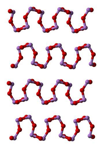 | Keywords: Claudetite-I-layers-3D-balls.png Ball-and-stick model of the stacking of layers in the crystal structure of claudetite I a high-temperature monoclinic form of arsenic trioxide As<sub>2</sub>O<sub>3</sub> X-ray crystallographic data from cite journal Monatsh Chem 109 2 March 1978 277-282 10 1007/BF00906344 Verfeinerung der Kristallstruktur des Minerals Claudetit As<sub>2</sub>O<sub>3</sub> Claudetit I F Pertlik Model constructed in http //www crystalmaker com/ CrystalMaker 8 1 Image generated in http //accelrys com/products/discovery-studio/visualization/discovery-studio-visualizer html Accelrys DS Visualizer Own 2009-01-11 Ben Mills Benjah-bmm27 Images by Ben Mills Ball-and-stick models Claudetite Crystal structures of oxides |