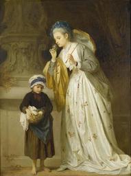 | Keywords: Claudius Schraudolph Die kleine Blumenverkäuferin.jpg The little flower seller; signed and dated 'C Schraudolph j 1868' lower left ; oil on canvas; 62 x 46 cm http //www bonhams com/auctions/14978/lot/86/ 1868 Claudius von Schraudolph 1843-1902 PD-old-100 Claudius Schraudolph der Jüngere Flower vendors in art Child labour in art Parasols in art 1868 paintings Rococo revival paintings Images from Bonhams Paintings of girls with baskets | ||||
