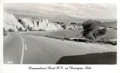 | Keywords: photo border text outdoor "Summerland Road B. C., on Okanagan Lake" Post Card. Made in Canada. View looking north along the Okanagan Highway (then Hwy. 5; Hwy. 97 from 1953) along Lake Okanagan approximately 8.5 km north of Penticton, BC. "Summerland Road B. C., on Okanagan Lake" Post Card. Made in Canada. View looking north along the Okanagan Highway (then Hwy. 5; Hwy. 97 from 1953) along Lake Okanagan approximately 8.5 km north of Penticton, BC. | ||||