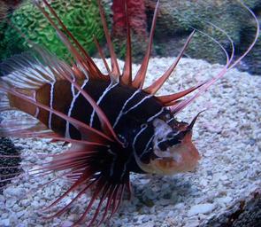 Keywords: clearfin lionfish fish venomous spines ocean reefs tropical marine life pterois radiata