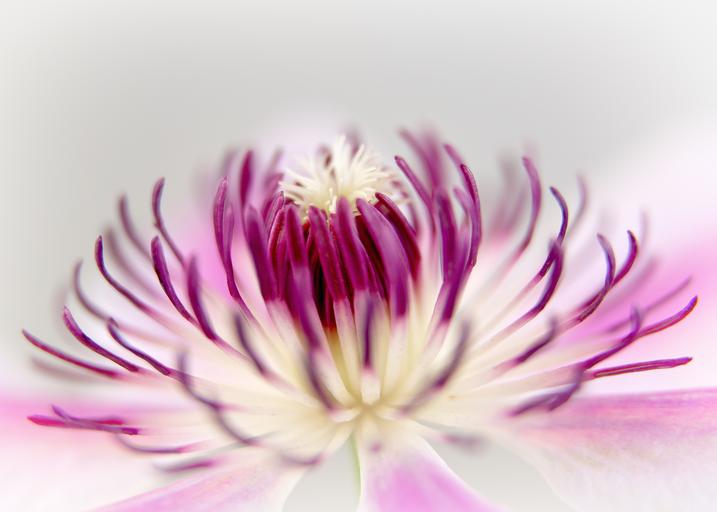 Keywords: clematis blossom bloom close pink white stamens flower plant bloom sun climber stamp flowers