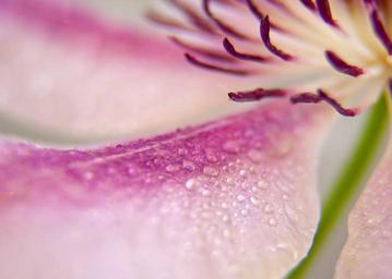 Keywords: clematis blossom bloom close pink white stamens flower plant bloom sun climber stamp flowers petal detail water drops rain