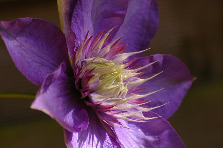 Keywords: clematis climber blossom bloom purple flower purple flower close violet plant garden petals filigree tender