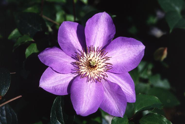 Keywords: clematis hybrid flower bloom blossom petals floral colorful blooming plant