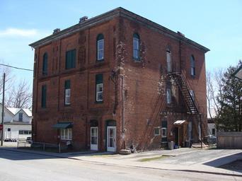 | Keywords: clement block clementblock brick george clement georgeclement freemasons fireescape architecture building outdoor building complex View of block on corner of St. George and Thomas Streets from the north-west. This building was designed and constructed by George Clement in 1892. An article in the town's newspaper of the time, The Tribune, dated December 16, 1892, describes the building as 'an ornament to the town'. It originally housed shops, a doctor's rooms and the Deseronto Club. The top floor was occupied by the Masonic fraternity. View of block on corner of St. George and Thomas Streets from the north-west. This building was designed and constructed by George Clement in 1892. An article in the town's newspaper of the time, The Tribune, dated December 16, 1892, describes the building as 'an ornament to the town'. It originally housed shops, a doctor's rooms and the Deseronto Club. The top floor was occupied by the Masonic fraternity. |