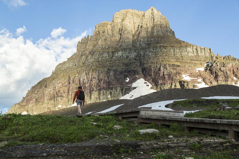 Clements_Mountain_and_Hiker_on_the_Hidden_Lake_Boardwalk.jpg (5760x3840)