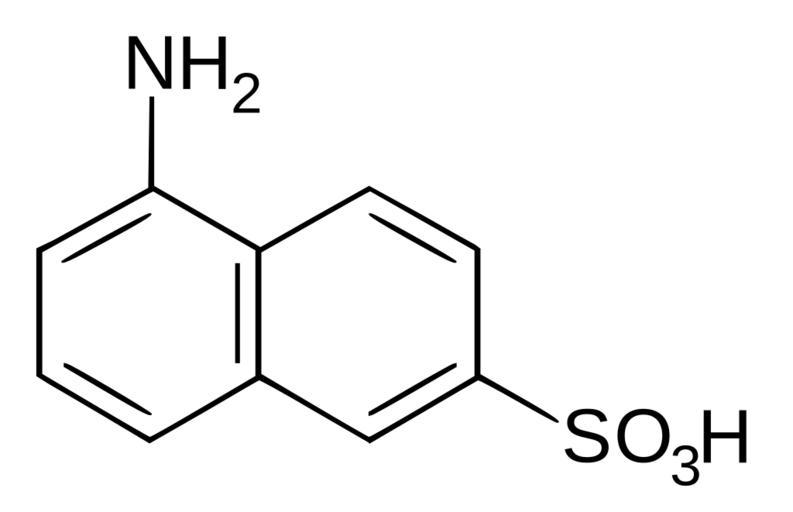 Keywords: Cleve beta acid.svg Skeletal formula of Cleve beta acid synonymous with 5-amino-2-naphthalenesulfonic acid Created using ISIS/Draw and Inkscape Own Krakatit 2008-08-31 Naphthalene sulfonic acids Naphthylamines