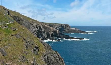 Keywords: cliff cliffs surf coast rock steep slope outlook atlantic ireland mizen head steilkueste water sea landscape view bluff wave booked steep