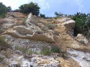 Keywords: cliff limestone structure detail nature special light brown vegetation summer denmark