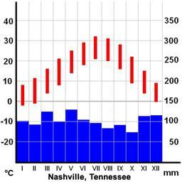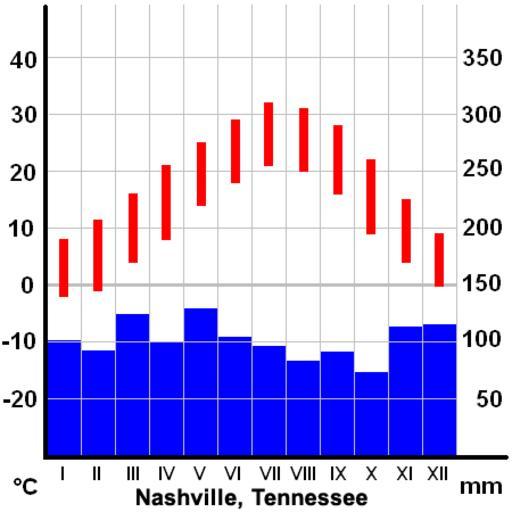 | Keywords: ClimateNashvilleTennessee.png Climate diagram of Nashville Tennessee Max and Min temperature and total precipitations per month Created by Kaldari January 2006 2006-01-26 own assumed Kaldari Climate diagrams of the United States Nashville Tennessee |