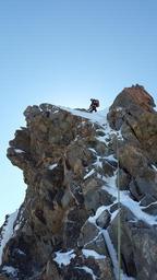 Keywords: climb alpine climbing climber secure rock climbing rock crag piz bernina alpine biancograt summit graubünden switzerland mountains high mountains glacier snow alpinism bernina group ridge
