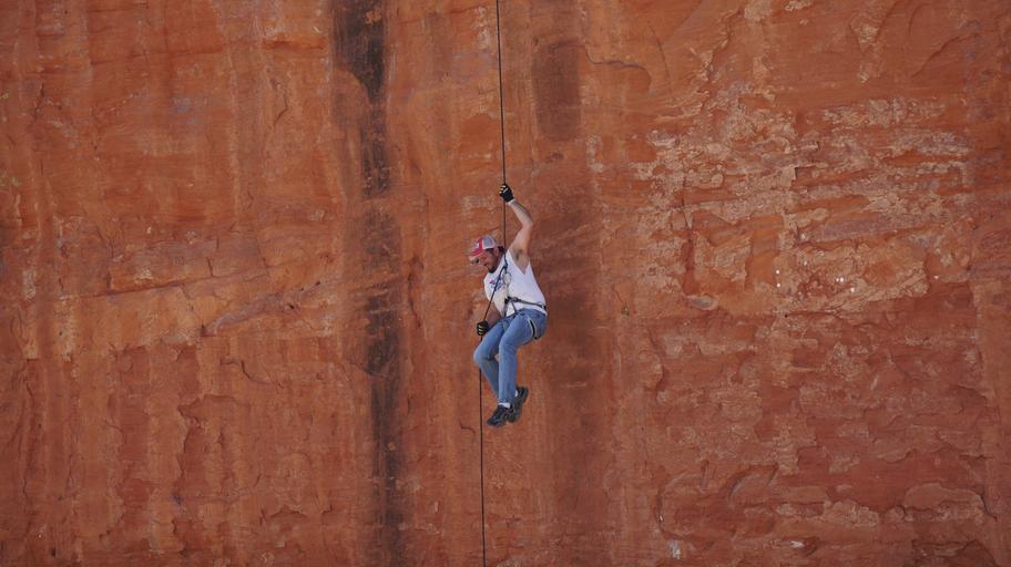 Keywords: climbing cliff mountaineer red mountains nature tourism oklahoma tourist attraction tourists hanging node risk of death