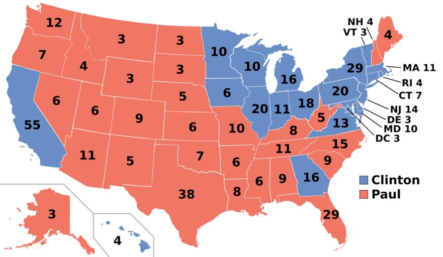 Keywords: Clinton vs. Paul.svg en Hypothetical 2012 U S Presidential election map pitting Ron Paul against Hillary Clinton File ElectoralCollege2012 svg MB298 2016-12-01 SVG maps by MB298 Fictitious U S presidential election maps