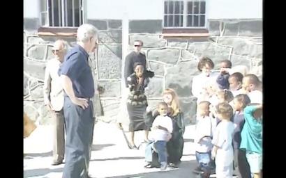 | Keywords: Clintons and Mandelas with children B.png en After Nelson Mandela gave the Clintons a tour of his former prison cell at Robben Island the group was met outside by a group of children who serenaded them 1998-03-27 Clinton Presidential Library https //www youtube com/watch v ndPrtbWCwVM White House Television crew other versions PD-USGov Robben Island Bill Clinton and Nelson Mandela Bill Clinton in 1998 | ||||