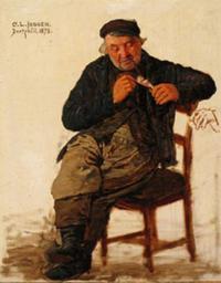| Keywords: CLJessen Studie HHansen.jpg Diese Gemäldestudie zeigt den Angaben eines Flensburger Heimatforscher zufolge der den Dargestellten persönlich gekannt hat den Gemüsehändler Hinrich Hansen aus C L Jessens Heimatort Deezbüll According to a local historian from Flensburg who knew the portrayed person this study shows greengrocer Hinrich Hansen from C L Jessen's home Deezbüll 1878 oil on canvas 43 5 × 43 5 cm Museumsberg Flensburg cite book Kunstkalender Schleswig-Holstein 1918/1919 Ernst Sauermann de Druckerei-Gesellschaft Hartung Co mbH Hamburg 1919 object history credit line accession number 9095 http //www museen-nord de/ml/digi_einzBild php pi 91_9095 suce Carl 20Ludwig 20Jessen mab_id kein sam kein page 2 action vonsuche r 20 Museen Nord PD-old-auto-1923 1917 DEFAULTSORT 1878; Carl Ludwig Jessen Carl Ludwig Jessen 19th-century portraits of men at full length 1878 paintings in Germany Niebüll Portraits with pipe Paintings in Kunstgewerbemuseum Flensburg |