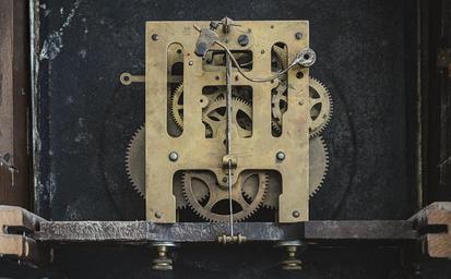 Keywords: clock gears inside equipment metal technology brass industry business time mechanical device clockwork mechanic vintage old machinery cogwheel mechanism